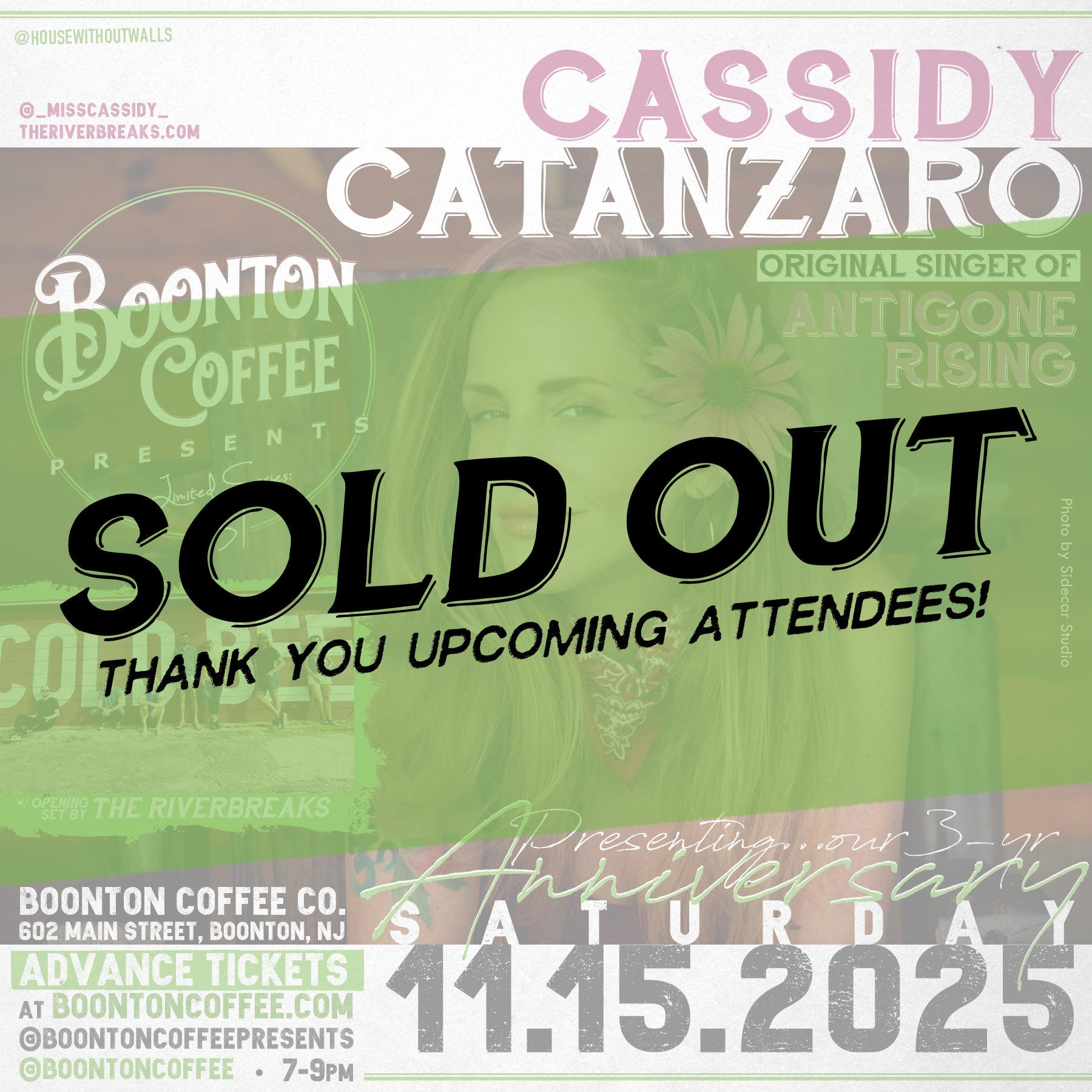We're celebrating 3 YEARS in the Boonton Coffee Presents series! We're somewhat beside ourselves just reflecting upon the shows we’ve been fortunate enough to host. This year we celebrate our double bill with the powerful yet endearing voice of Cassidy Catanzaro (original singer & songwriter of Antigone Rising!) plus opening set by the elegant sounds of The Riverbreaks!